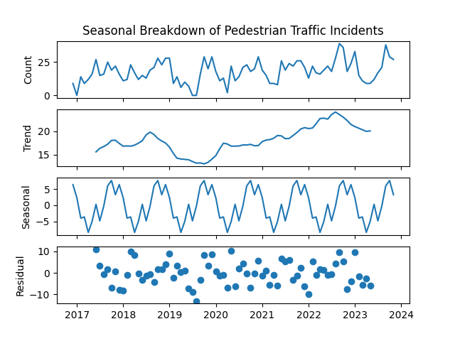 I’m back with an update on Pedestrian-Traffic Incidents for the month of November. The data is sourced from the City of Calgary’s open data website. The data set is here.