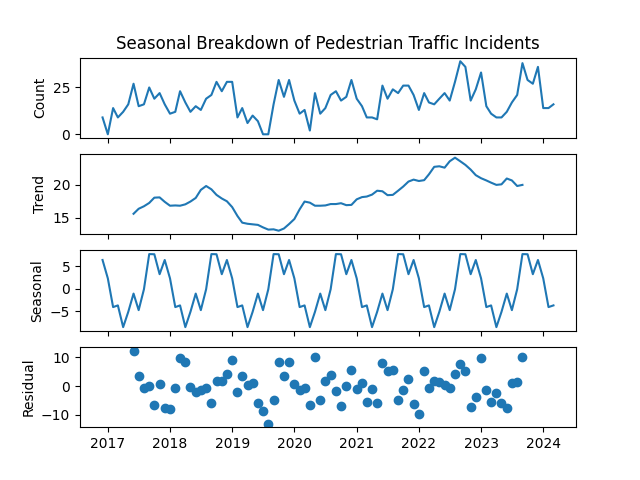 I’m back with an update on Pedestrian-Traffic Incidents for the month of March. The data is sourced from the City of Calgary’s open data website. The data set is here.