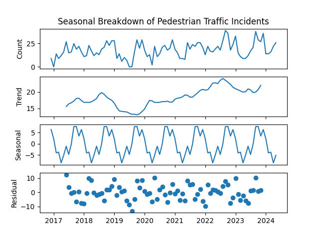 I’m back with an update on Pedestrian-Traffic Incidents for the month of May. The data is sourced from the City of Calgary’s open data website. The data set is here.