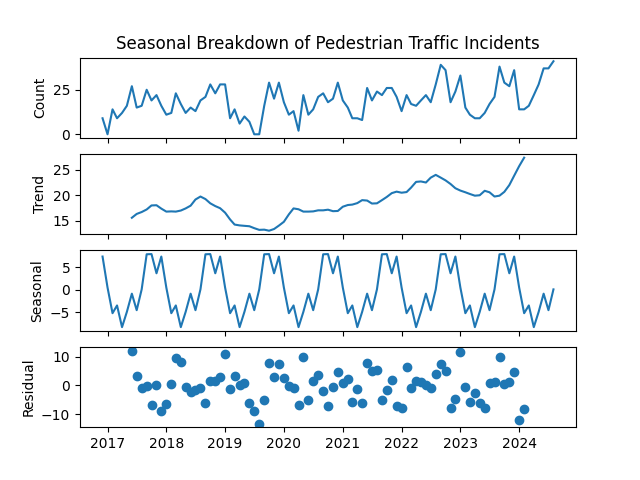 I’m back with an update on Pedestrian-Traffic Incidents for the month of August. The data is sourced from the City of Calgary’s open data website. The data set is here.