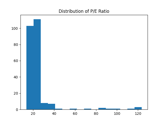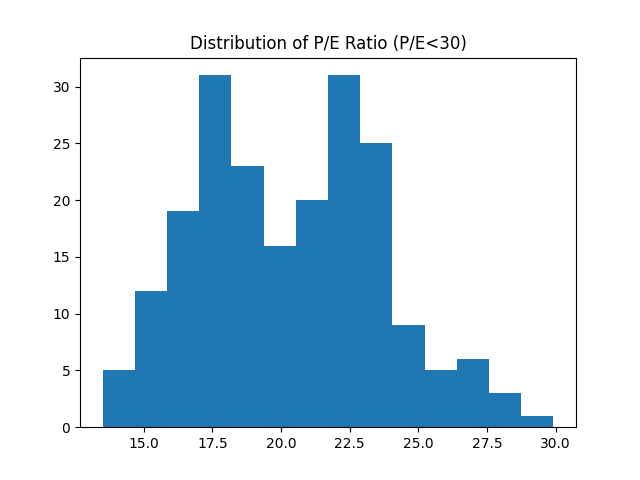 If we eliminate the outliers and only consider P/E ratios less than 30 the distribution becomes much less skewed: